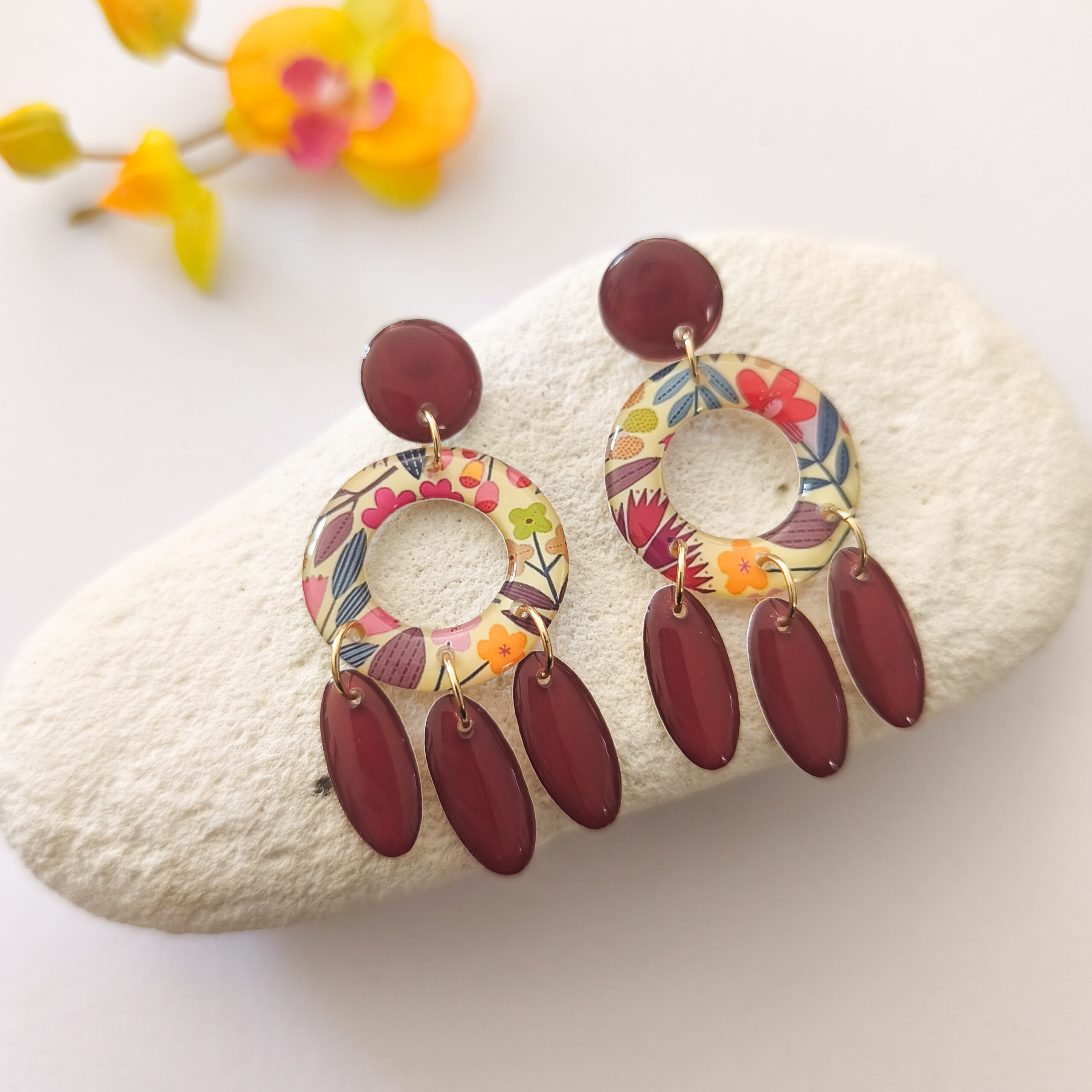 A noter : De légères variations du motif sont possibles par rapport à la photo. Chaque bijou est unique en fonction de la découpe du papier.